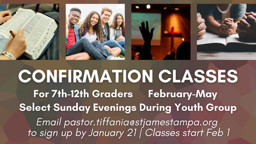 Email pastor.tiffania@stjamestampa.org if your student is interested!